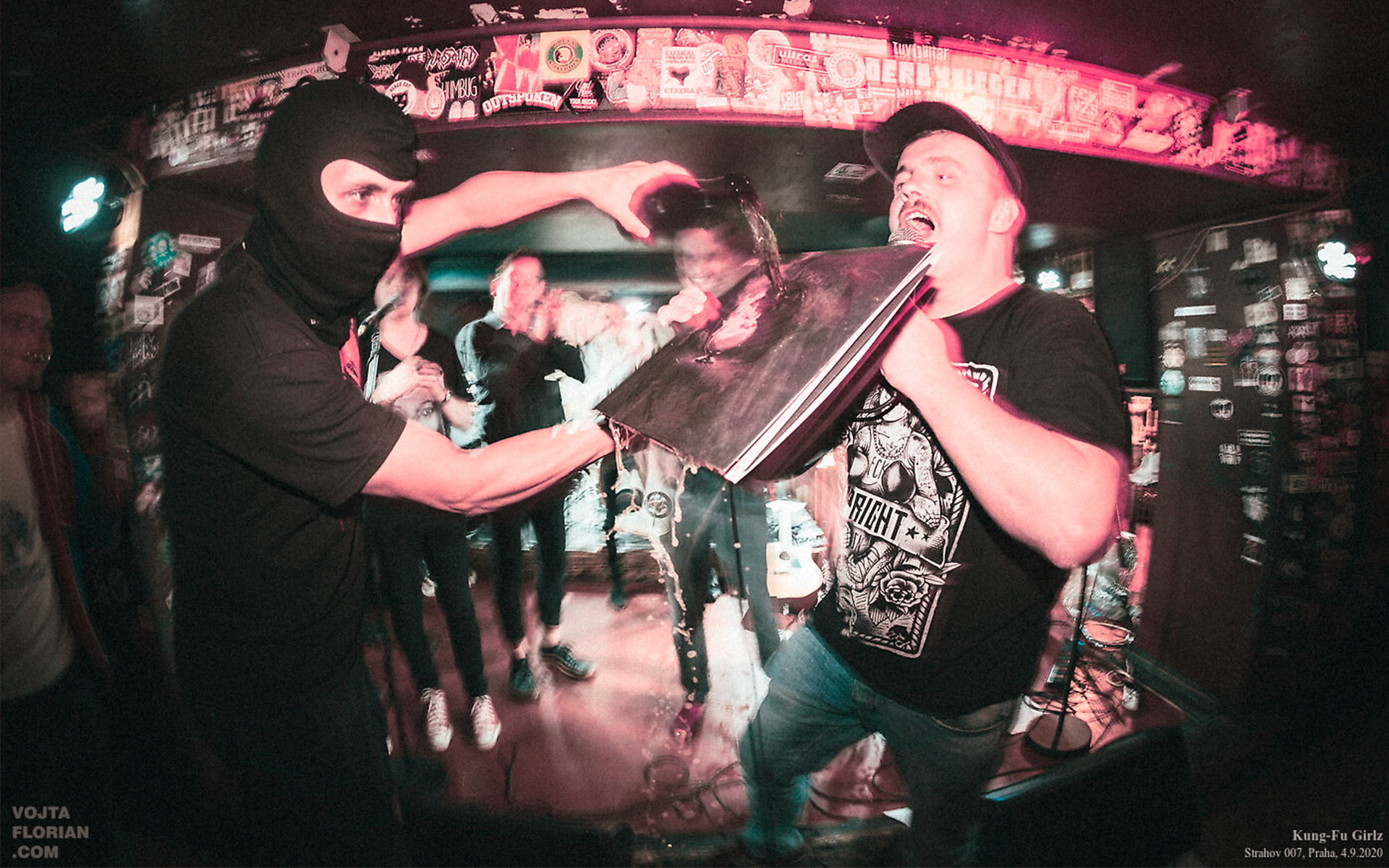 Vinyl design and visual style of 10th anniversary party of punk band Kung-fu Girlz.